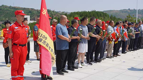 8月3日,烈日炙烤着武乡太行峡谷,八路军烈士陵园里却涌动着特殊的暖流。河北应急委救援寻人寻亲服务队的志愿者,与李文生、李文明、赵国峰、郝继祥四位抗战烈士的亲属共20余人相聚于此。坐着轮椅的房建,与山西烈士寻亲专委会主任武大疆一同迎向烈士家人,掌心相握的瞬间,仿佛连缀起历史与当下的情感纽带。此次行程的大巴车费用、祭奠烈士的花圈、亲人手中的鲜花乃至午餐开销,皆由房建个人承担。他的话语质朴却掷地有声:"我是高位截瘫的残疾人,能做这样的善事,便多做一年、多做一次。只要有信息来,我们团队就一定尽心尽力找下去。"
